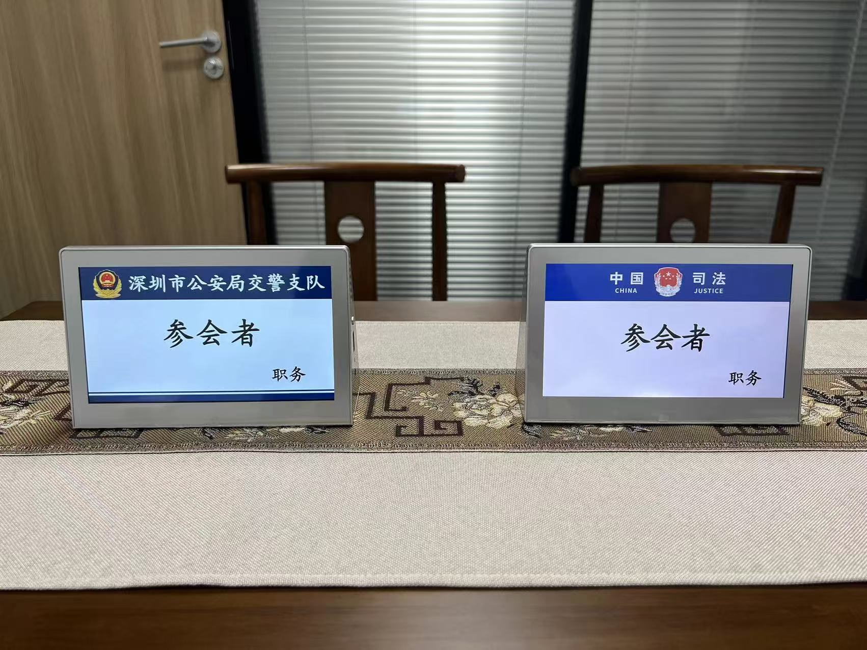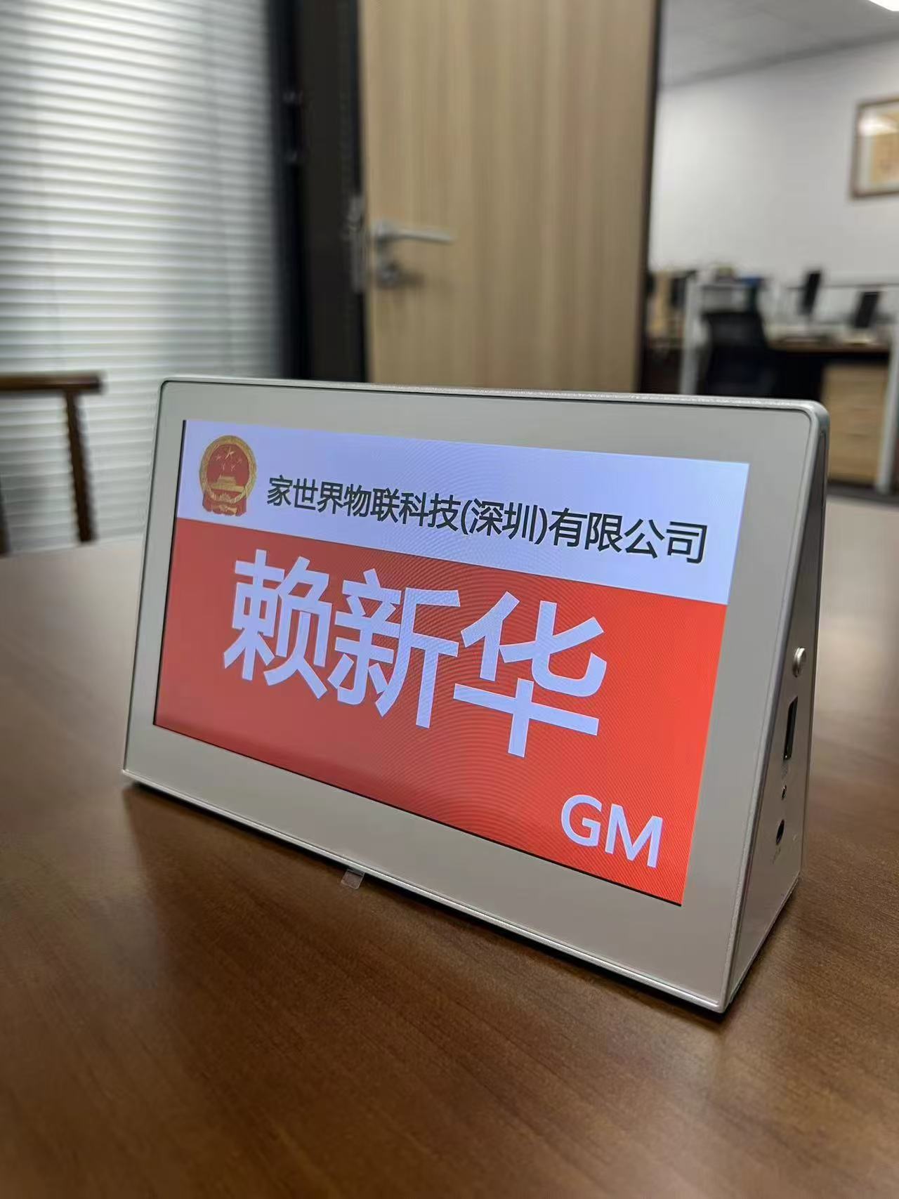 这款桌牌设计简洁大气,线条流畅,放在任何会议桌上都是一道亮丽的风景线。而且,它采用了高清电子屏,显示效果清晰,信息一目了然。