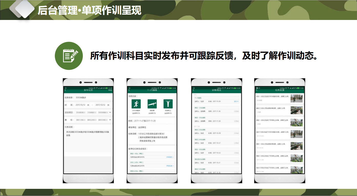 优势:移动APP应用,操作简便,信息完整,查询方便。训练过程可跟踪、可反馈、可评估,可对比。